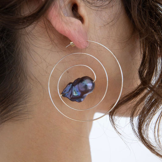 Silver Spiral Pearl Earrings