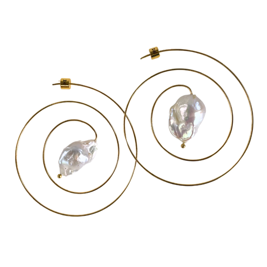Gold Spiral Pearl Earrings